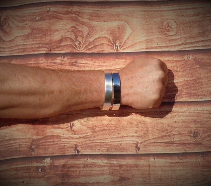 Dimension 13 mm wide 3.mm Bar will fit 7 to 8 Inch Wrist, Open or close it to get the fit you like.