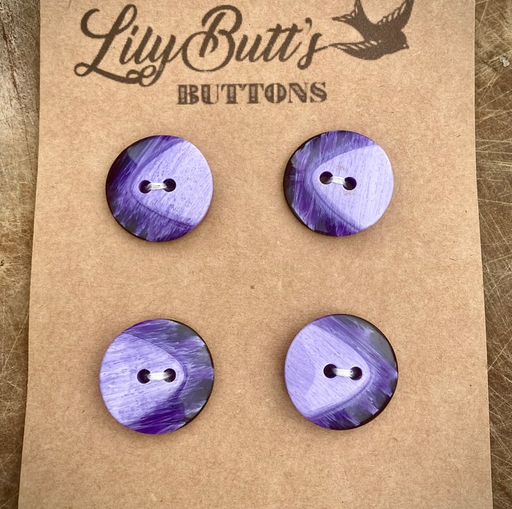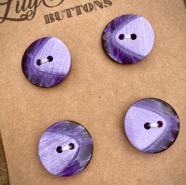 4 lovely 2 tone purple buttons, don't think they are very old, 25mm!