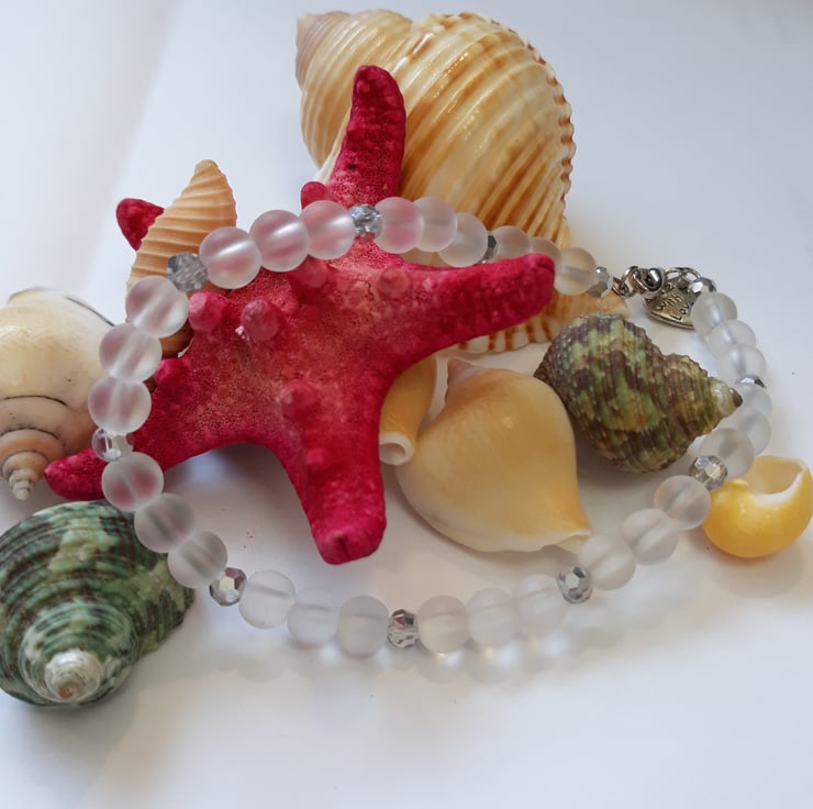 For this special anklet I've used pretty frosted quartz beads with silver colour faceted beads for a bit of Summer sparkle.