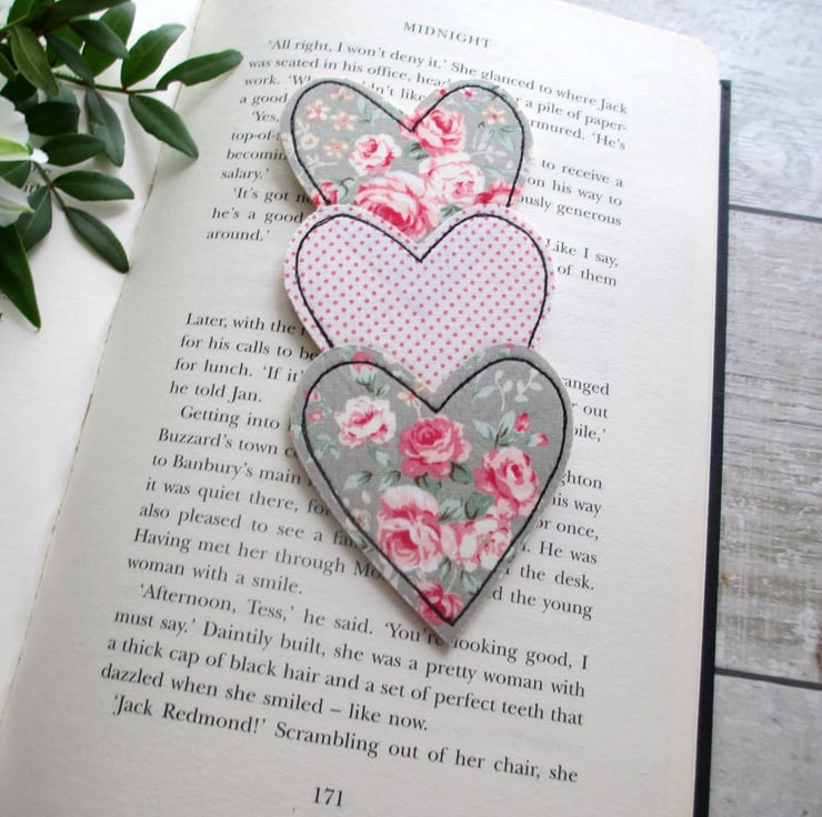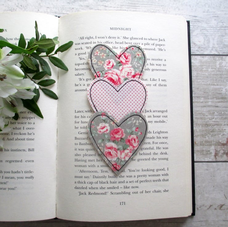 This pretty floral and polka dot heart trio bookmark is the perfect gift idea for a book lover.