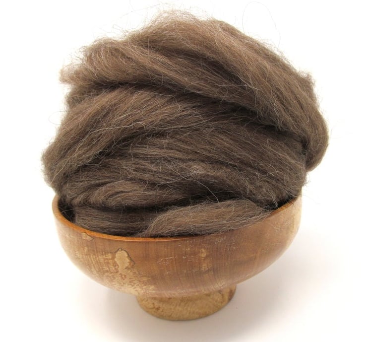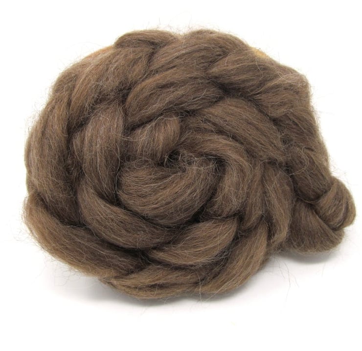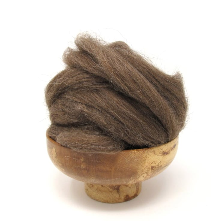 A natural rich brown wool, suitable for handspinning and felting. Very popular with felt makers and spinners as it creates a light, airy, warmth-trapping yarn.