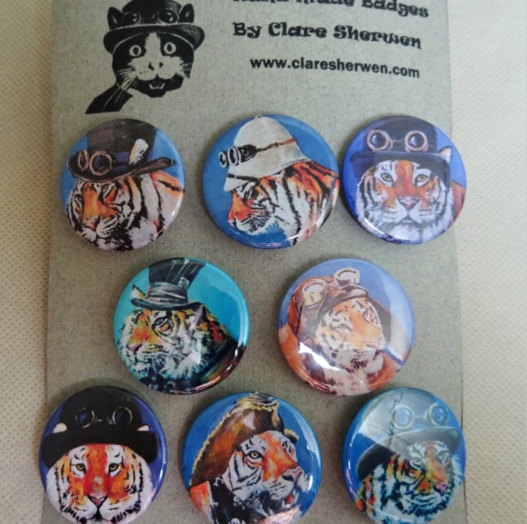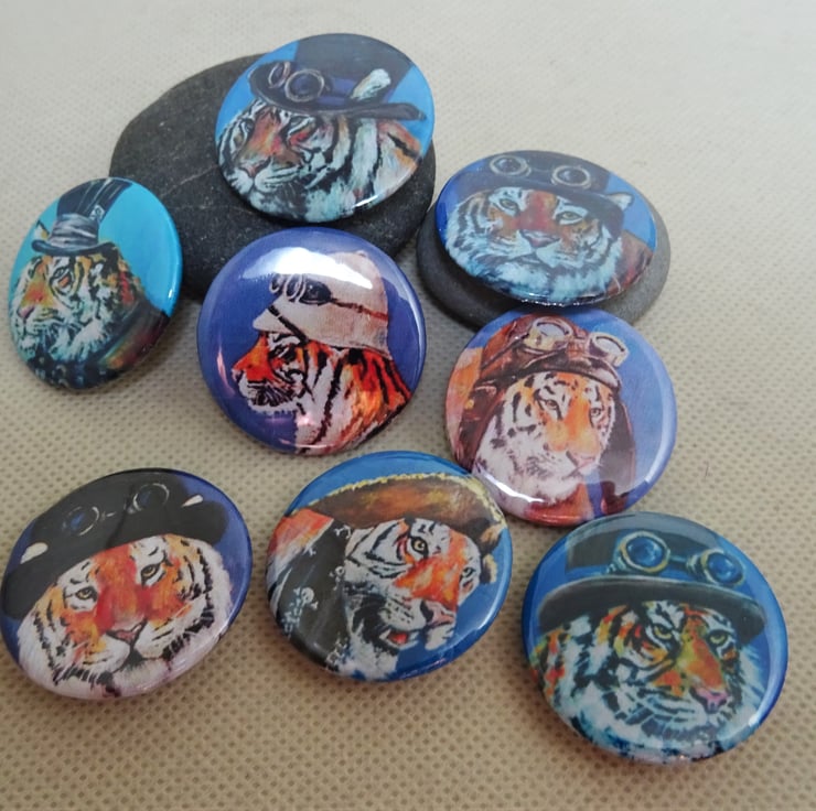 Steampunk Tiger Art Badges