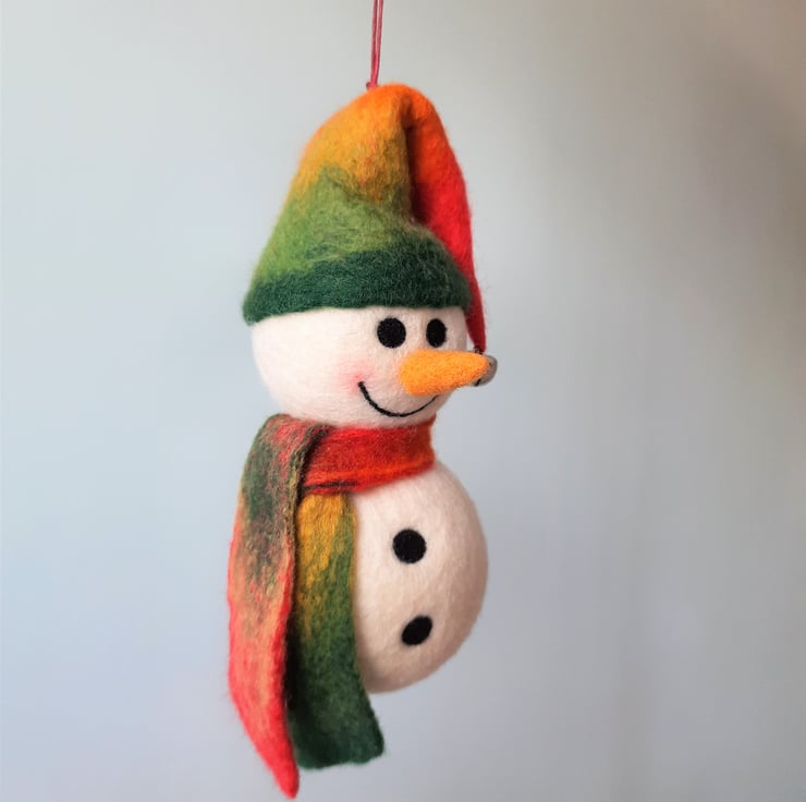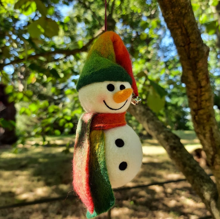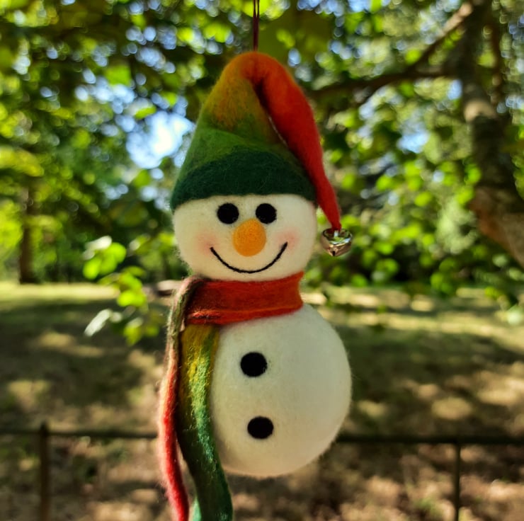 Crafted with Merino wool roving for a soft addition to any festive tree- each little snowman has their own hat & scarf in a complimentary colour palette. Facial features, expression and buttons have all been stabbed on, to avoid the use of embellishments- making this a super special piece for younger members of the family as well as the big kids amongst us!
