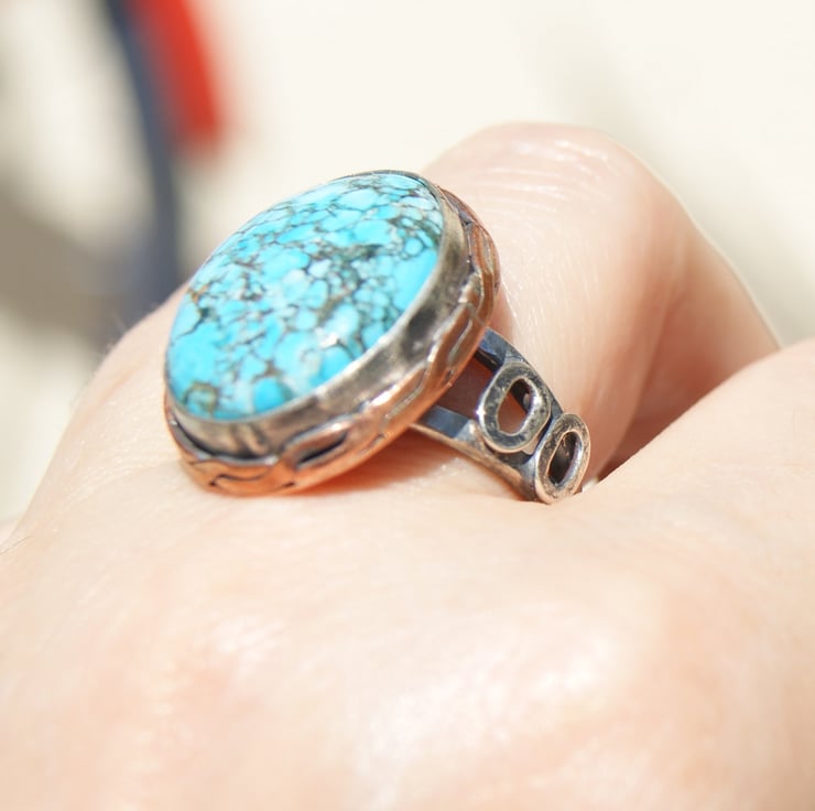 This ring features a beautiful turquoise cabochon.