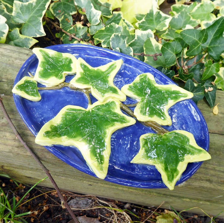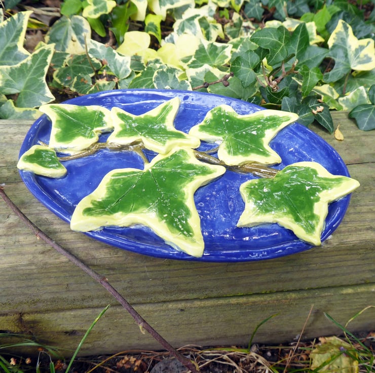 Ivy Ornamental Ceramic Dish. Hand Sculpted from Clay by Me