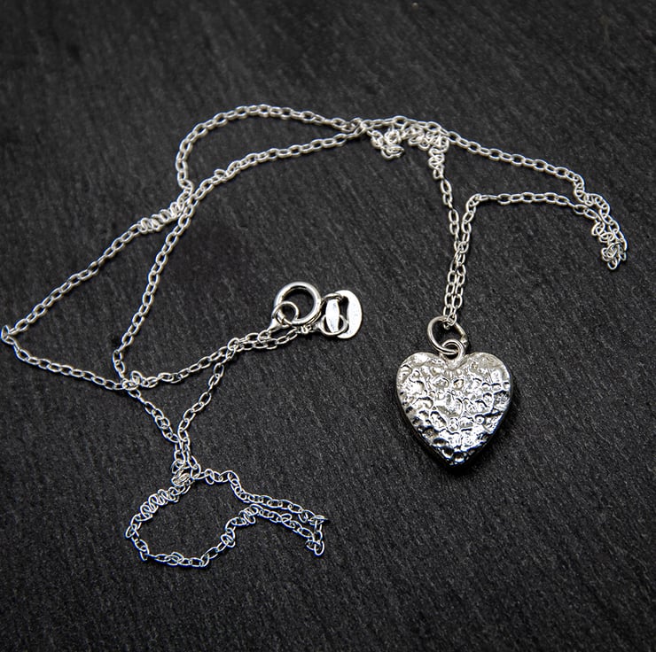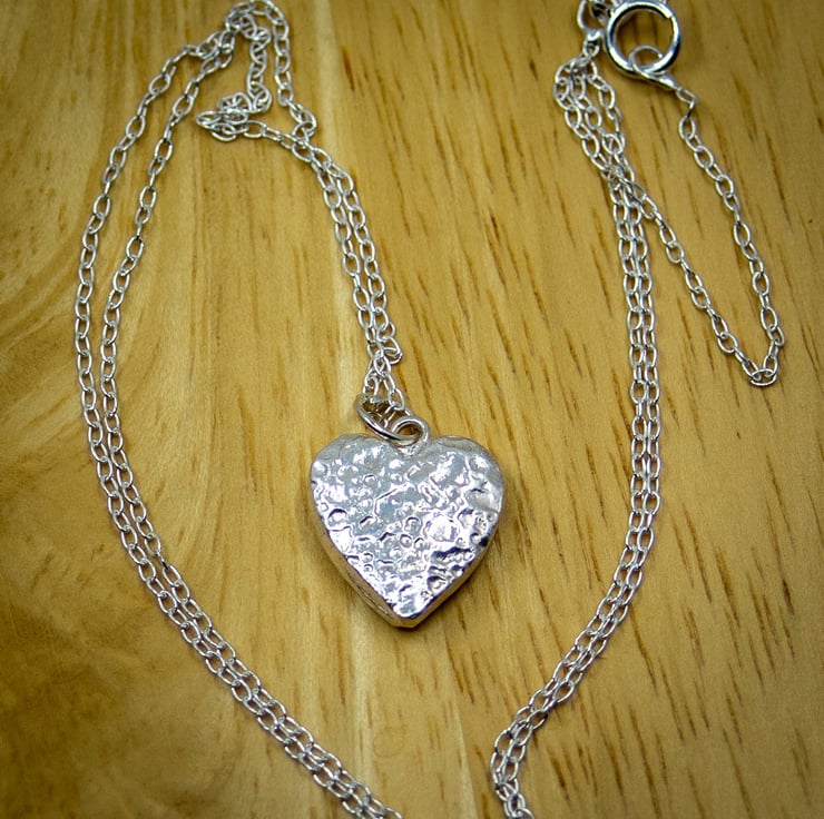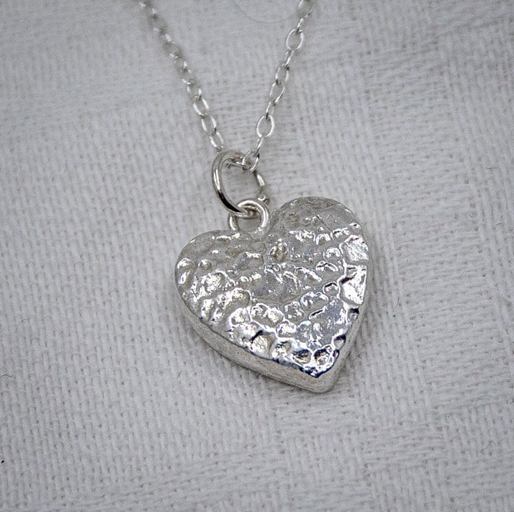 This little heart shaped pendant is patterned on both sides with a crinkle pattern.