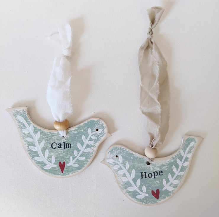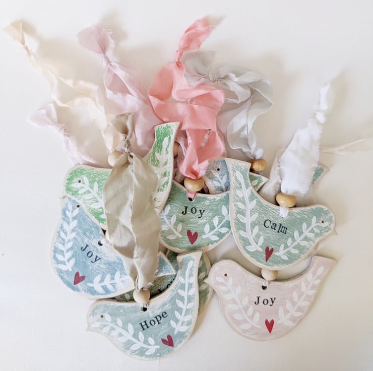 These little birchwood birds are all individually hand painted, and stamped with words of positivity!