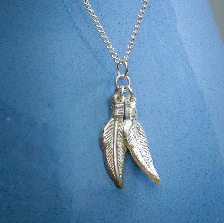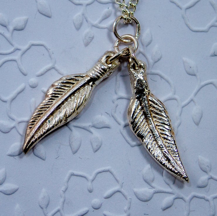 These two feathers are made with Silver Clay and joined by a jump ring.