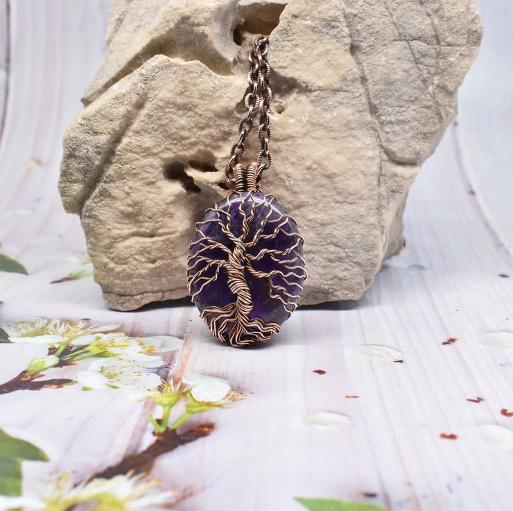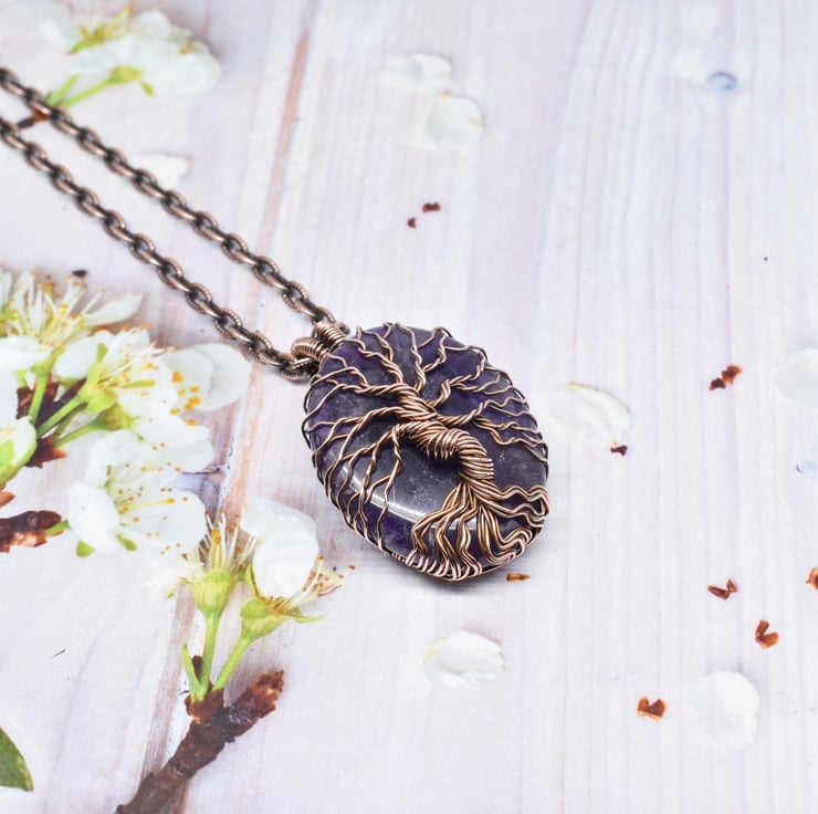 Wire Wrapped Amethyst and Copper Tree of Life Pendant