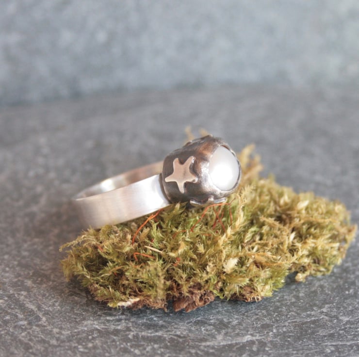 This freshwater pearl ring has been handmade by myself and is the perfect gift for a star gazer or for a pearl wedding anniversary.