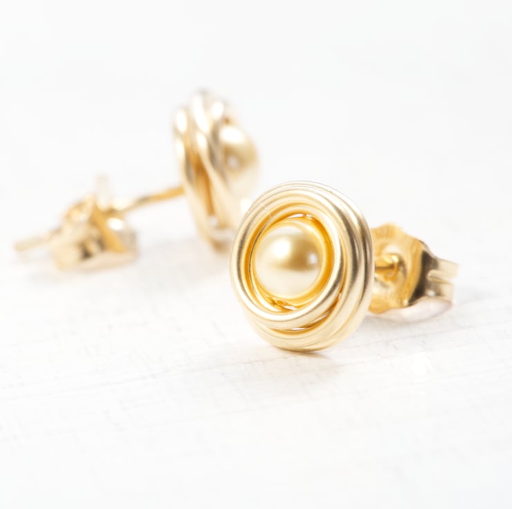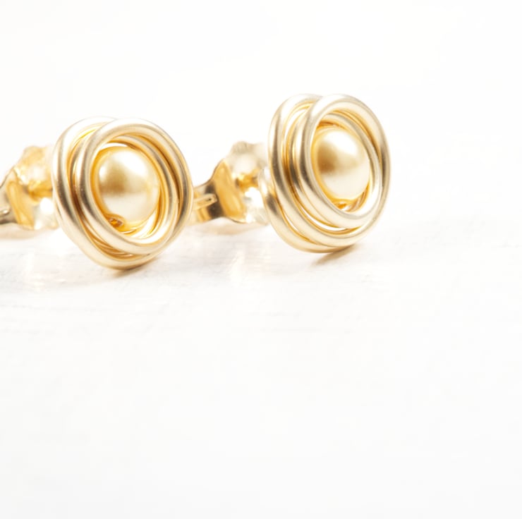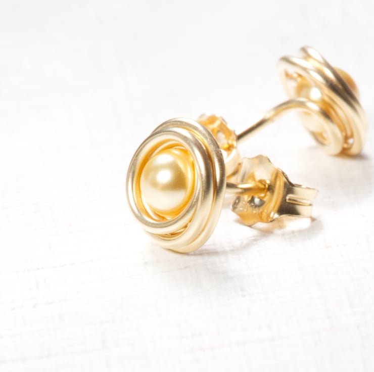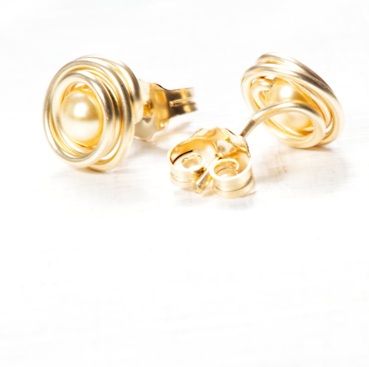 Handmade Gold Filled Small Stud Earrings with Swarovski Pearl - Gold are made with 4mm Swarovski Round Crystal Gold Pearl wrapped with 20 Gauge (0.8mm) 14K Gold Filled wire. The size of the earring is approximately 7mm diameter.