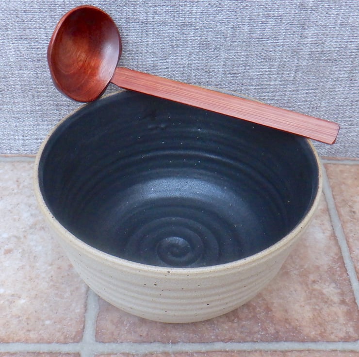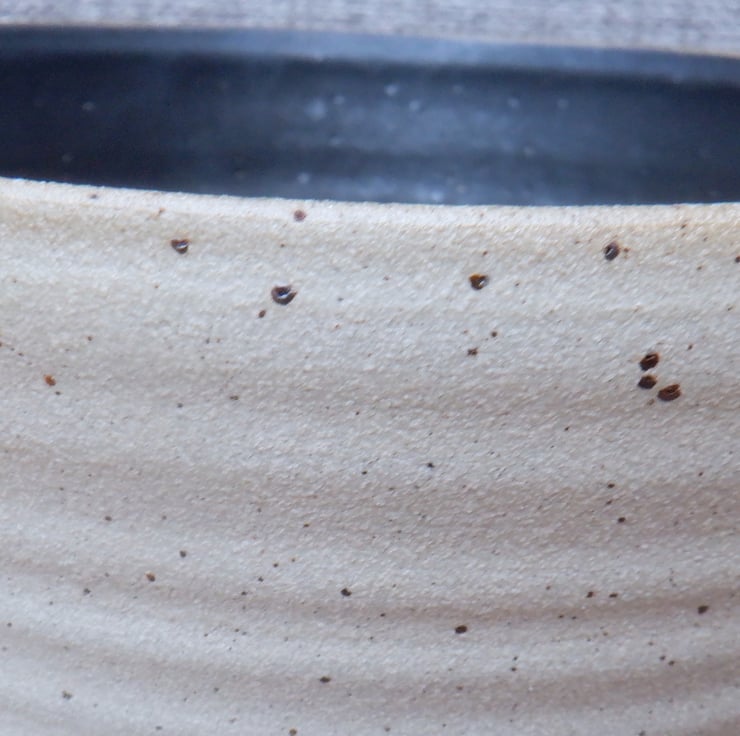 This large serving bowl was thrown on my pottery wheel using strong off-white speckled stoneware clay, with a distinct speckle, and finished in a lovely satin charcoal glaze.