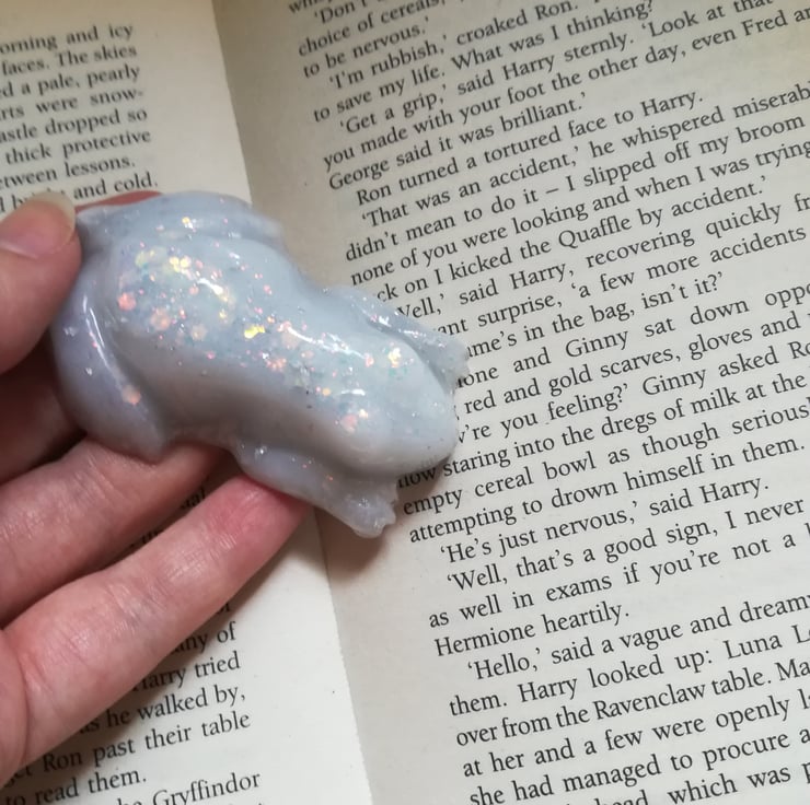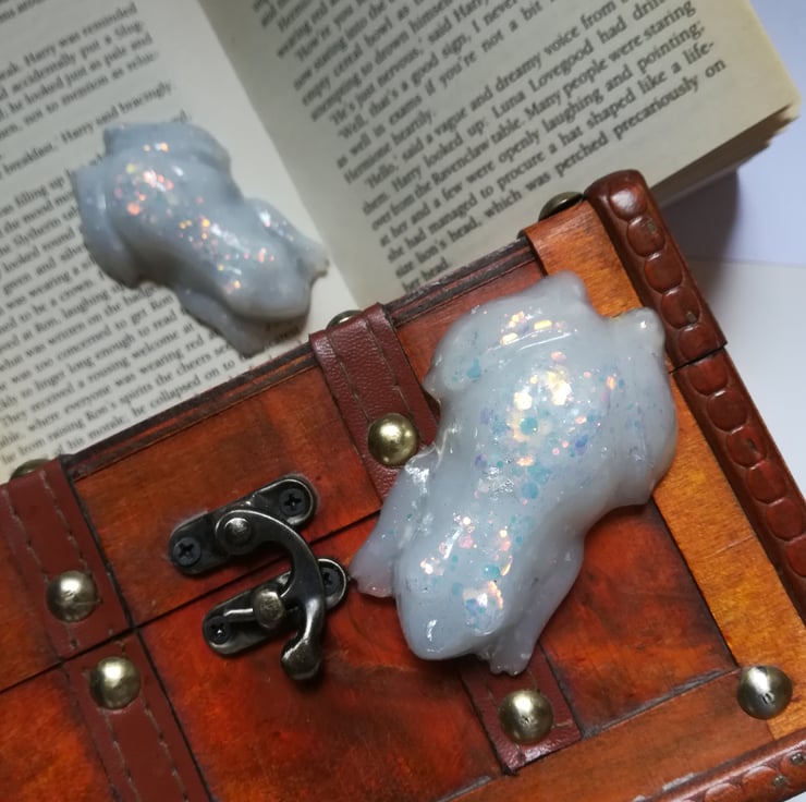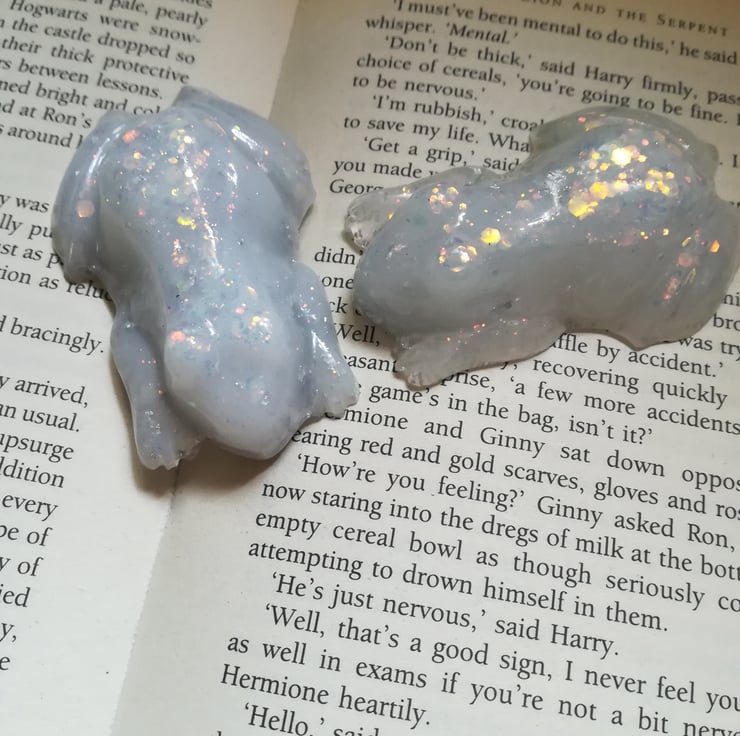 This resin frog is made using white resin with added glitter.