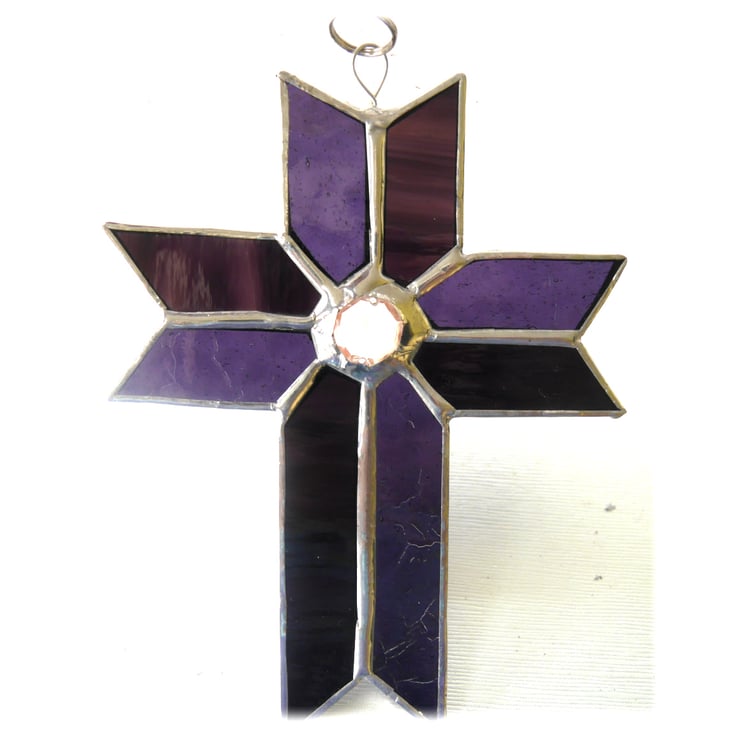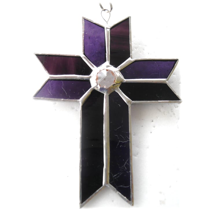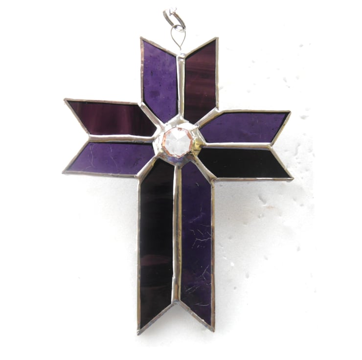 Cross Suncatcher Stained Glass Handmade purple Crystal 051