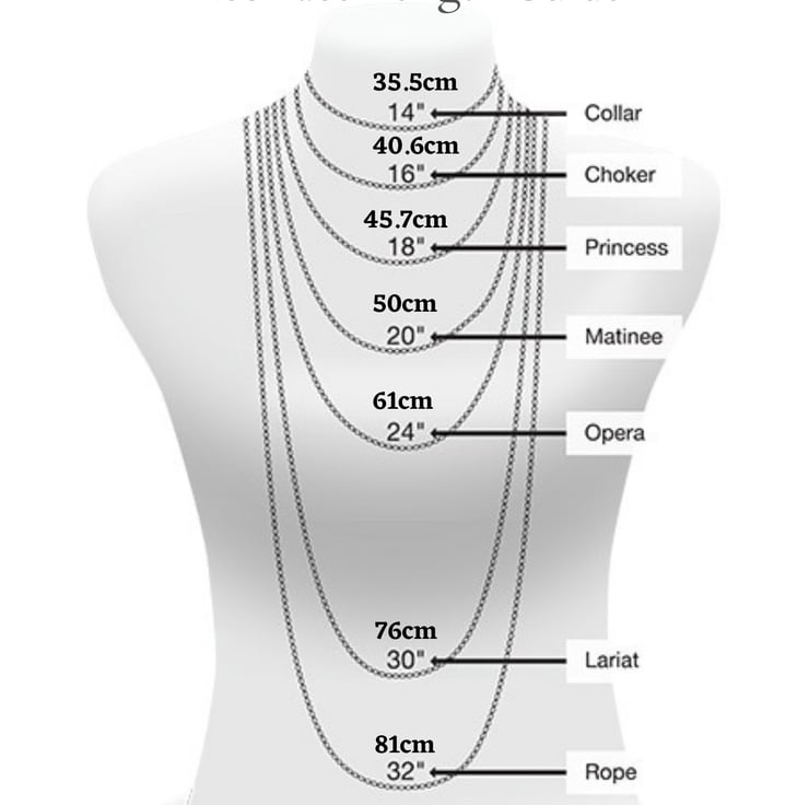 The necklace is available in 3 lengths - 15, 16 & 18 inch.