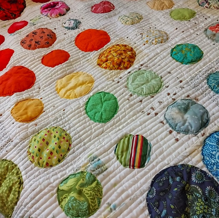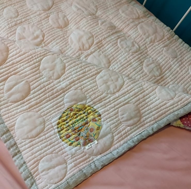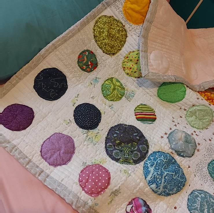 the quilting on this one is really heavy i think the quilting design really makes the blobs fluff up and stand out i think it looks equally cool from the back