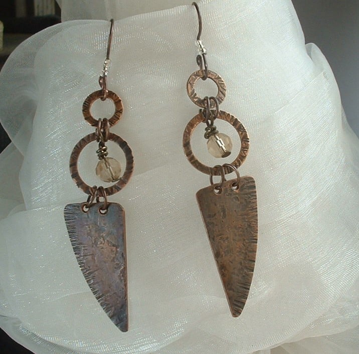 The copper I use is repurposed copper plate and old electrical wire...I love to turn materials that have had a useful and practical life into something beautiful to wear.
