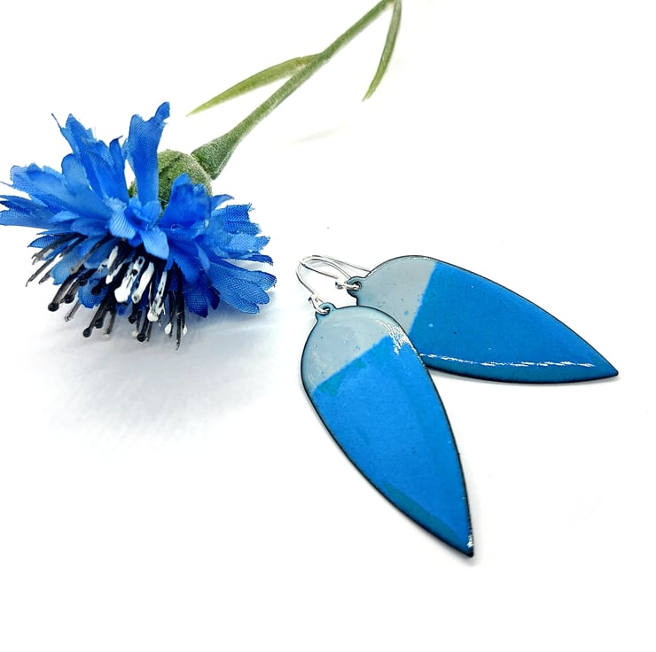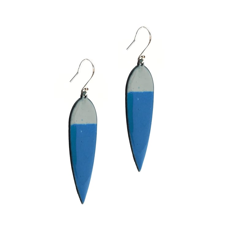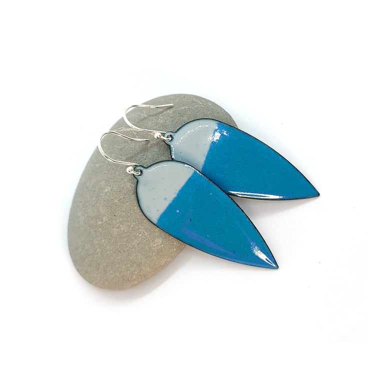 These teal and grey enamel earrings are a beautiful shape and perfect for adding some colour to your outfit. Bold and beautiful. Set the scene with these statement earrings in grey and teal enamel.