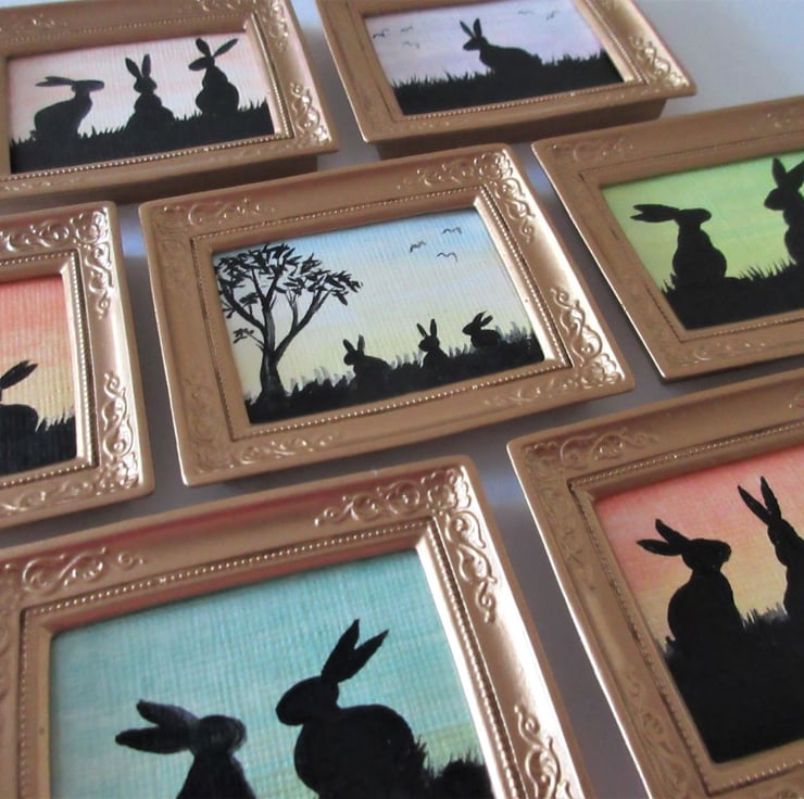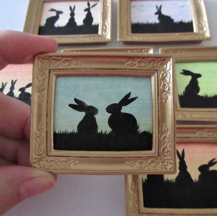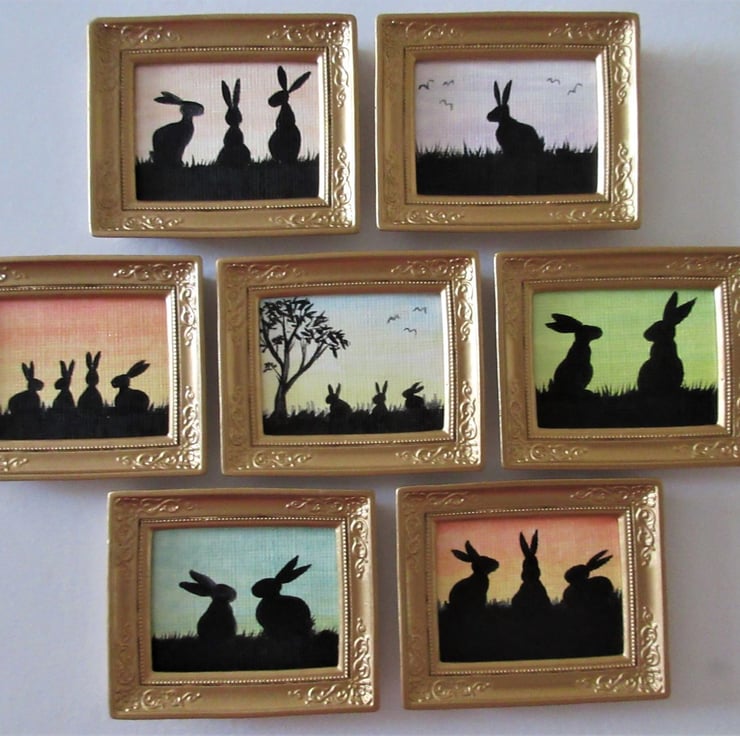 We have always had dolls houses in the family, mostly homemade, and filled with many pieces of furniture and accessories of our own making. Painting bunnies is my main business, but I enjoy painting them in all sizes, hence doing some in such a small size, which are ideal for use in dolls houses and room sets etc.