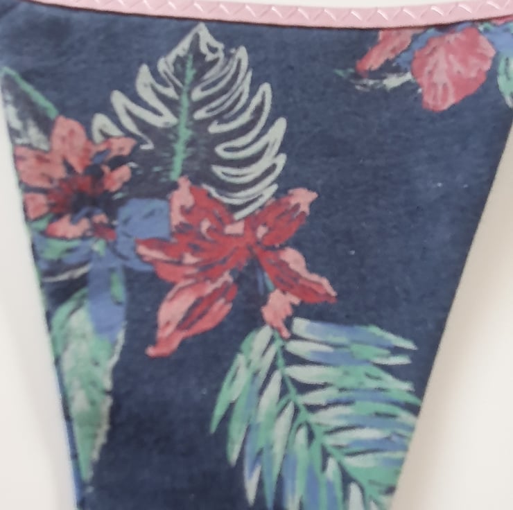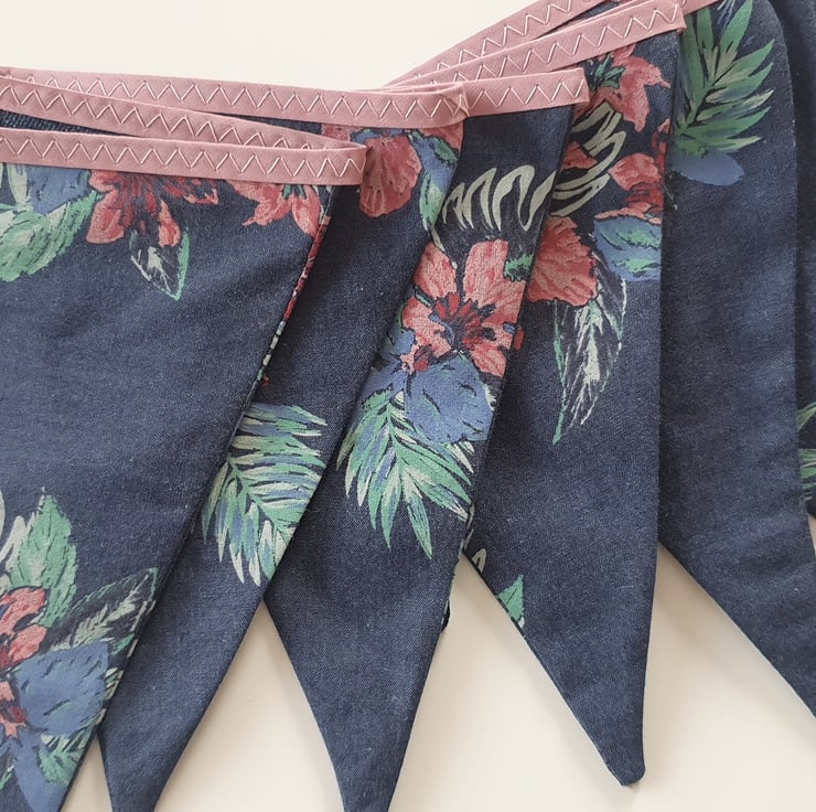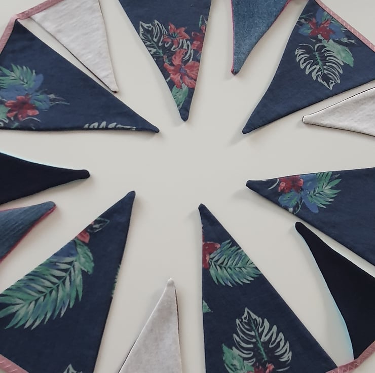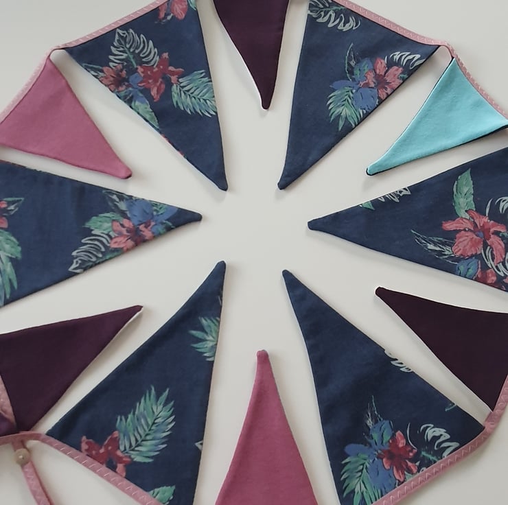 Made from a small Hawaiian shirt, t-shirts and a pillow case, this gorgeous bunting is a very versatile length. Lovely in the garden for summer BBQs or in the home.