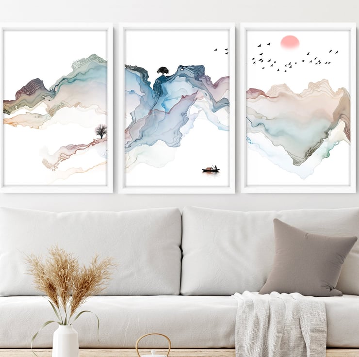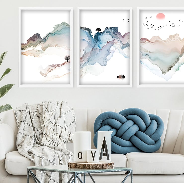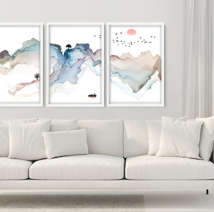 Decorate your living room with this set of 3 minimalist watercolor paintings suitable for the living room, bedroom, home office, hotel lobby, office waiting room area, and hospital decor. Perfect decor to create a calming and tranquil interior for a stress-free sanctuary. - Get yours today!