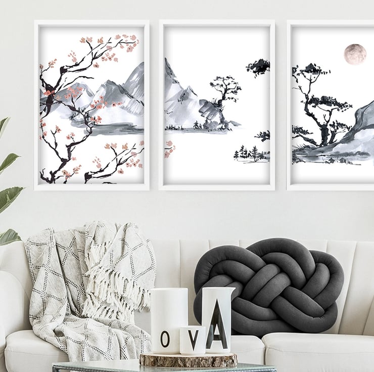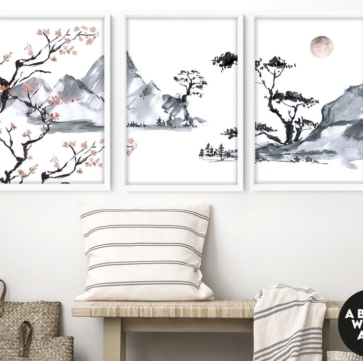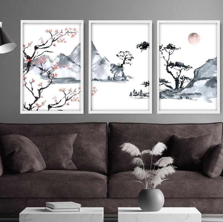 Decorate your living room with this set of 3 minimalist watercolor paintings suitable for the living room, bedroom, home office, hotel lobby, office waiting room area, and hospital decor. Perfect decor to create a calming and tranquil interior for a stress-free sanctuary. - Get yours today!