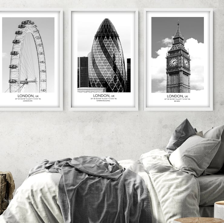 You will receive 3 non-framed London Iconic Landmarks Wall Art Prints.