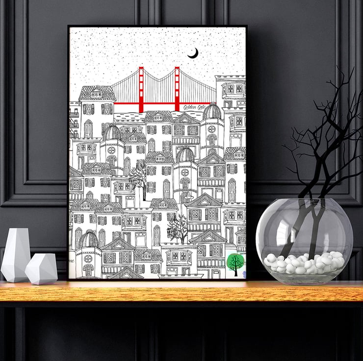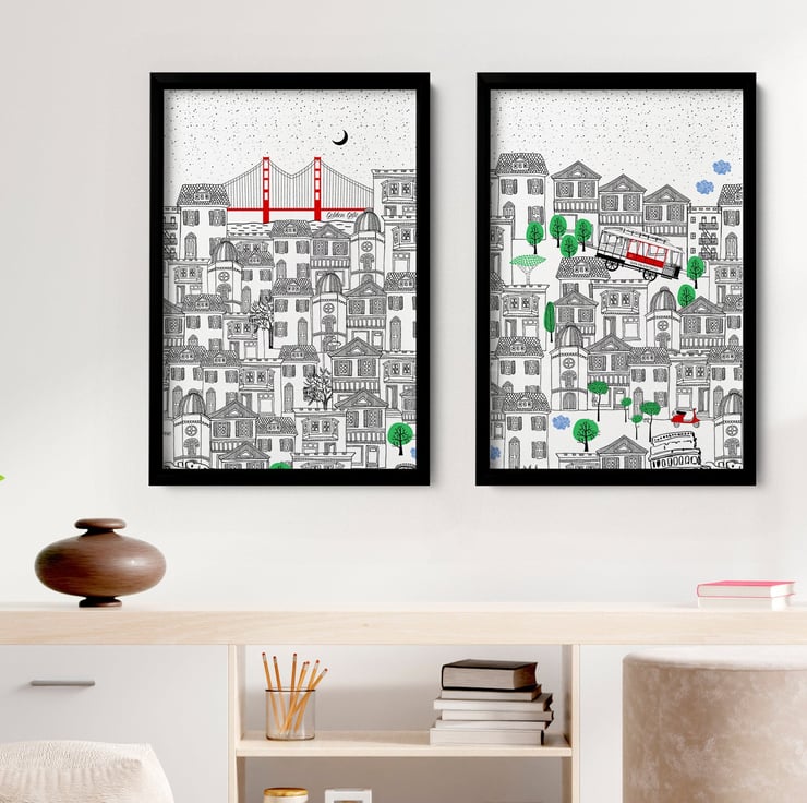 You will receive 2 non-framed San Francisco Illustrated Wall Art Prints.
