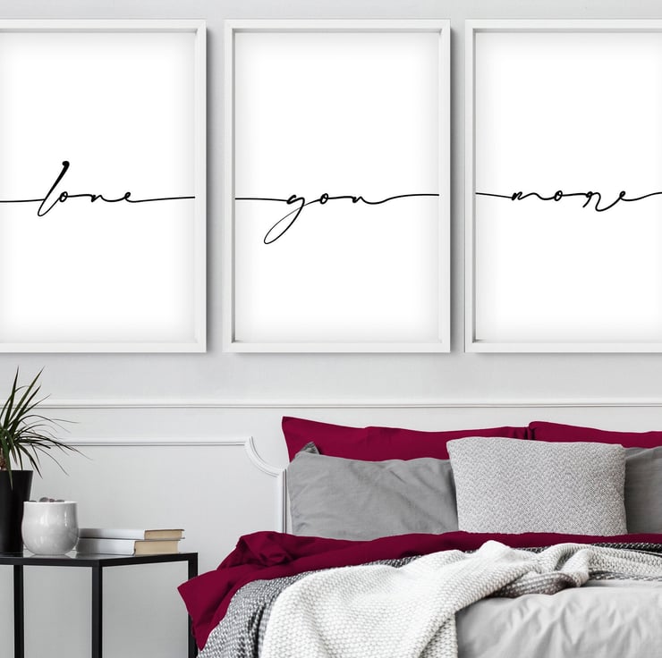 Decorate your Love nest with this set of 3 Customizable Romantic Wall art prints with Contemporary inspiration. Add some love to your home decor ideal for minimalistic homes, beach houses, or as an Anniversary or Valentine's day gift. What a unique gift for your partner! It can be used as a Living room art wall, house entry wall, as well as Bedroom artwork.