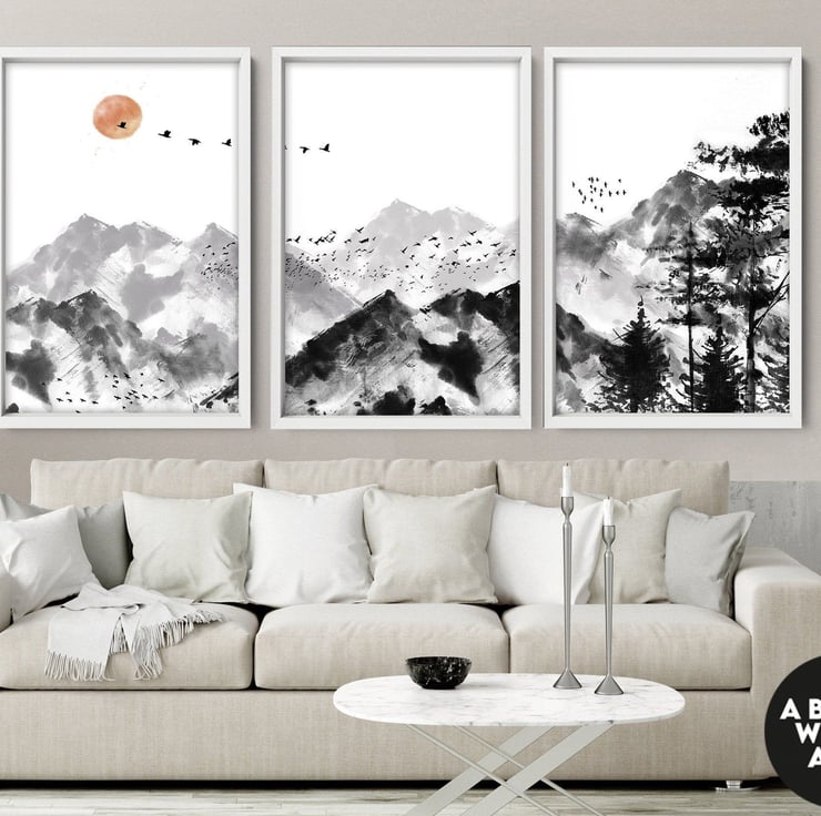 Decorate your living room with this set of 3 minimalist watercolor paintings suitable for the living room, bedroom, home office, hotel lobby, office waiting room area, and hospital decor. Perfect decor to create a calming and tranquil interior for a stress-free sanctuary. - Get yours today!