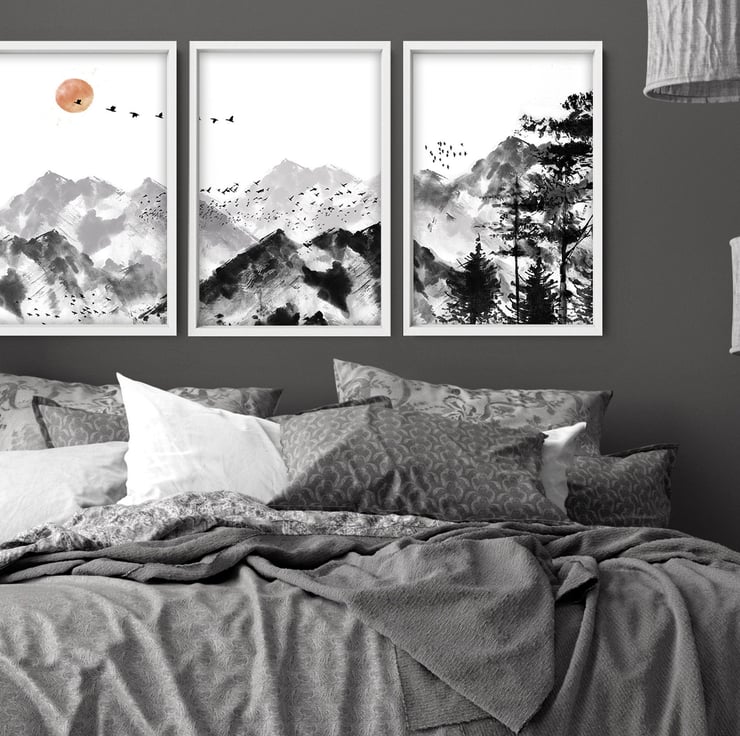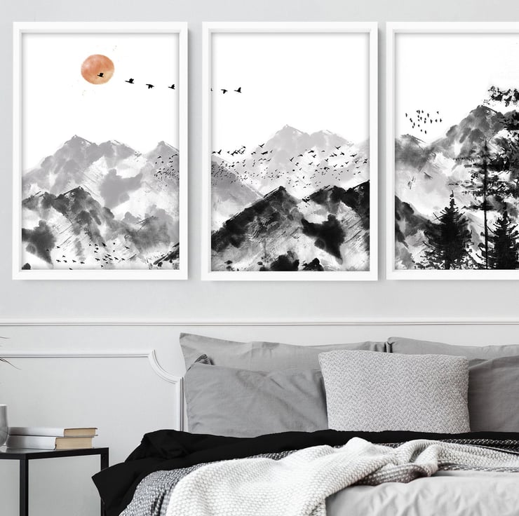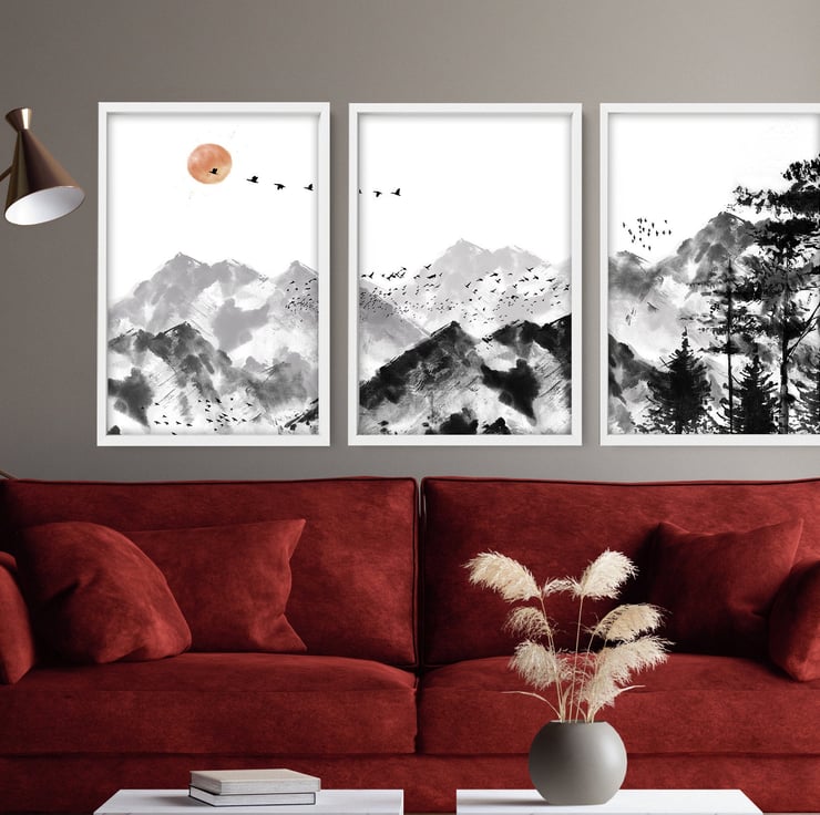 You will receive 3 non-framed watercolor Landscape wall art prints with Japanese inspiration.
