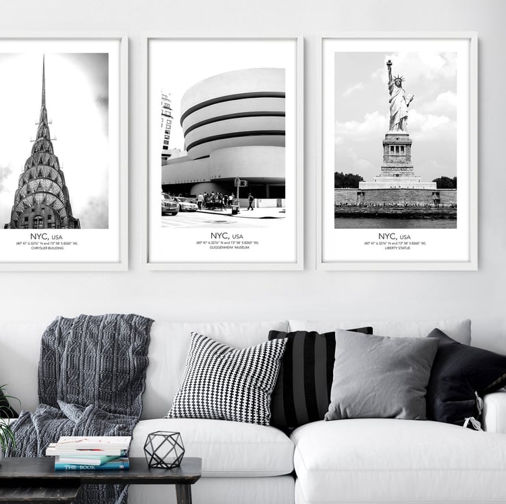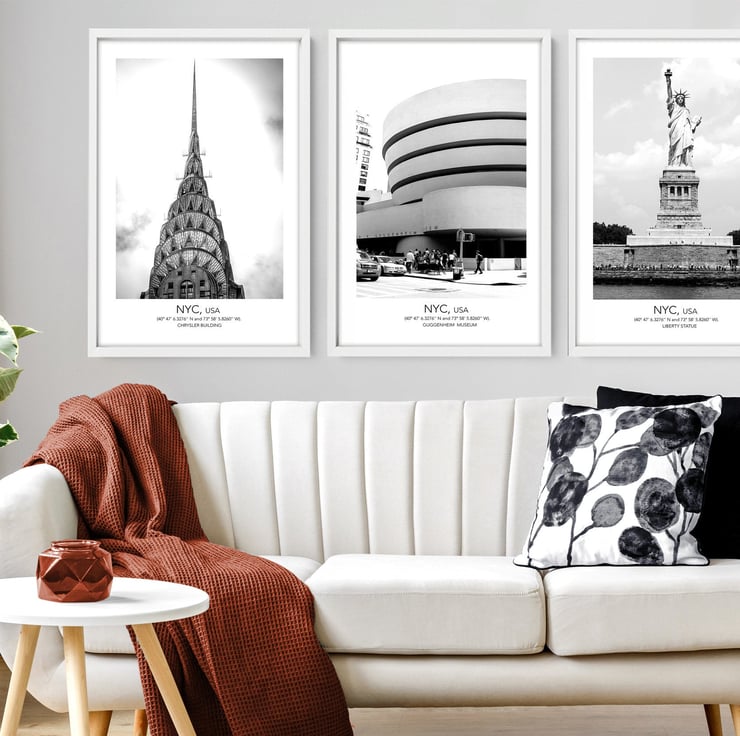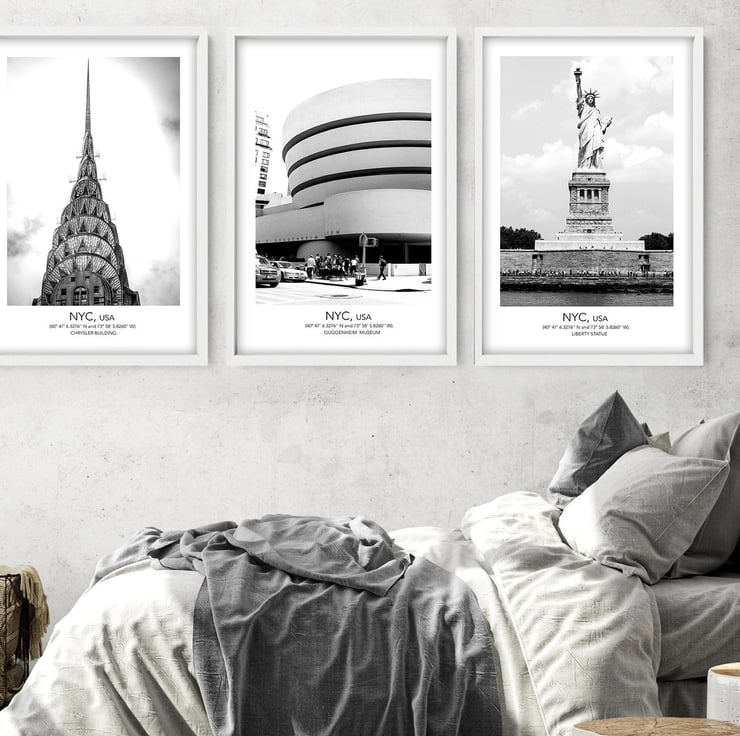 You will receive 3 non-framed NYC Iconic Landmarks Wall Art Prints.