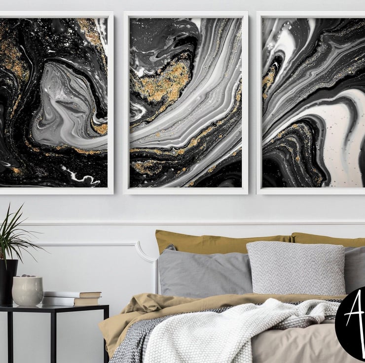 Decorate your living room with this set of 3 Abstract art prints inspired by Marbled Textures.