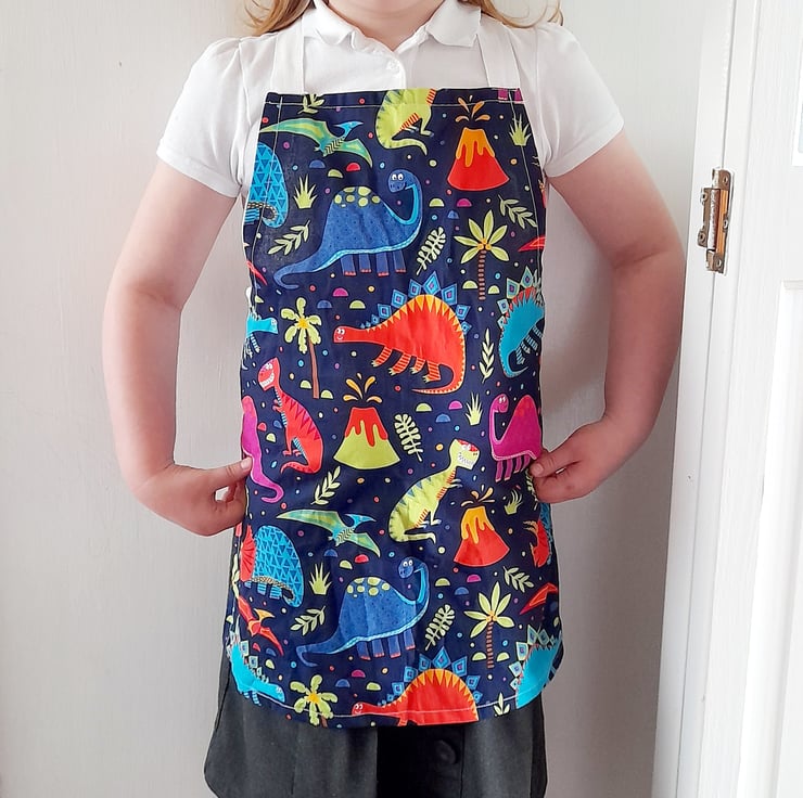 Dinosaur apron made from 100% cotton. This apron is perfect for baking and cooking. Machine washable at 30 degrees.