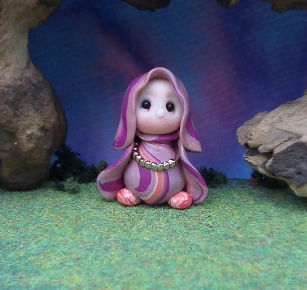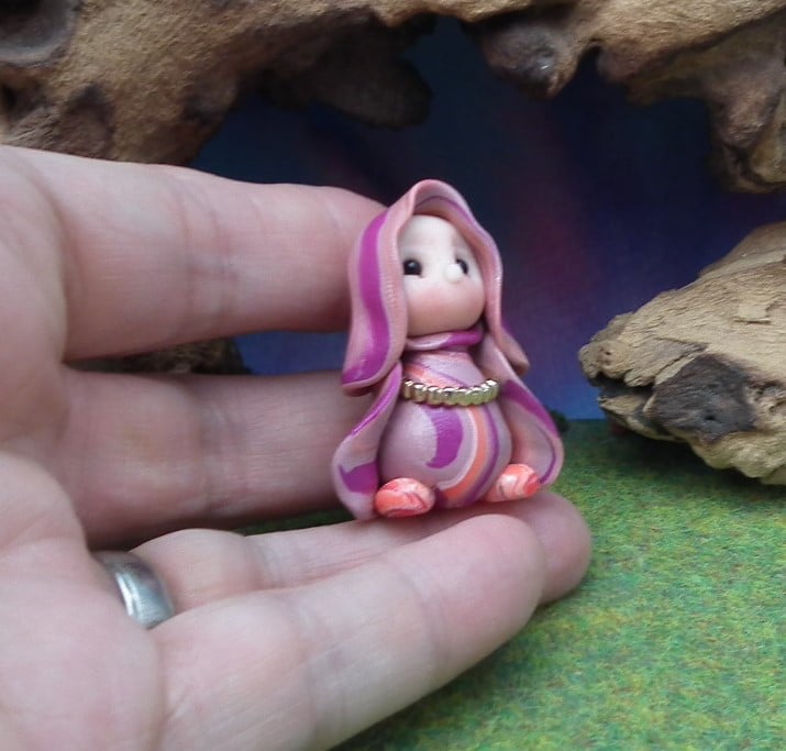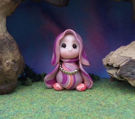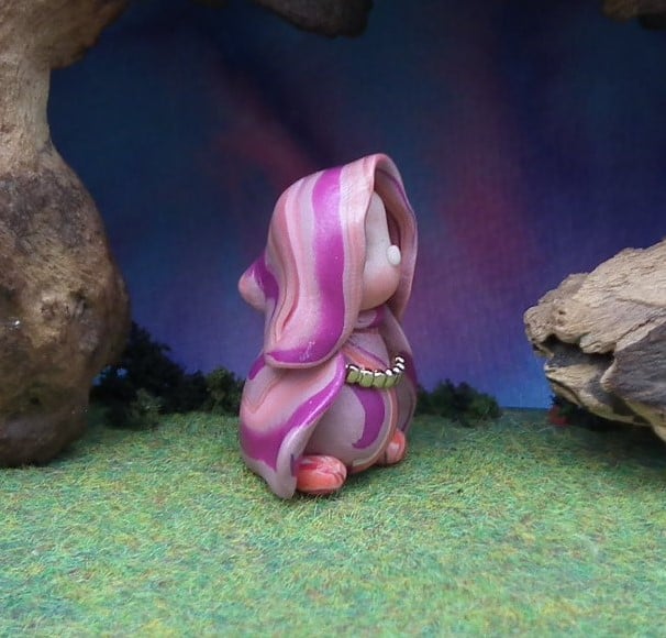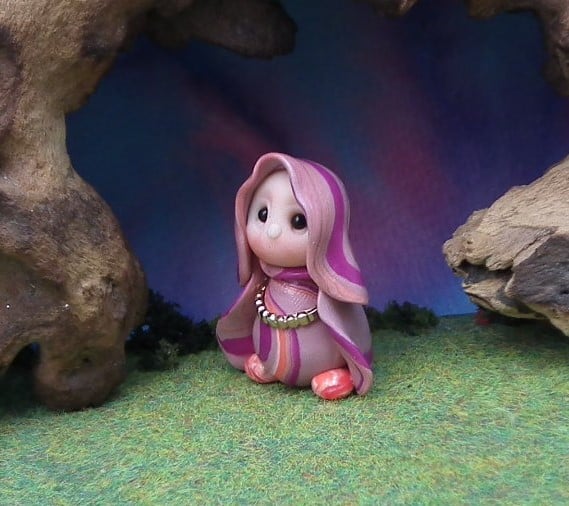 This is a 'one of a kind' creation having been entirely handmade without the use of moulds here at my studio on the Sussex Coast. Modelled with Prosculpt polymers, painted with heat set paints before sealing with lacquer, Caro has sparkling black onyx eyes and variegated robes. Caro the Garden Gnome is just one and a half inches tall.