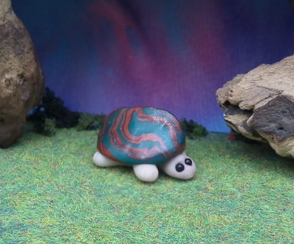 A 'one of a kind' creation having been entirely handmade without the use of moulds here at my studio on the Sussex Coast. Modelled with my own blend of polymers, painted with heat set paints before sealing with lacquer. Lenni is just over one inch long ...