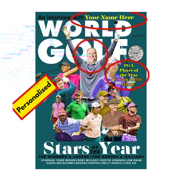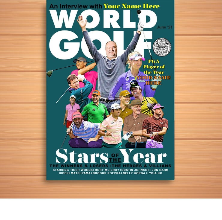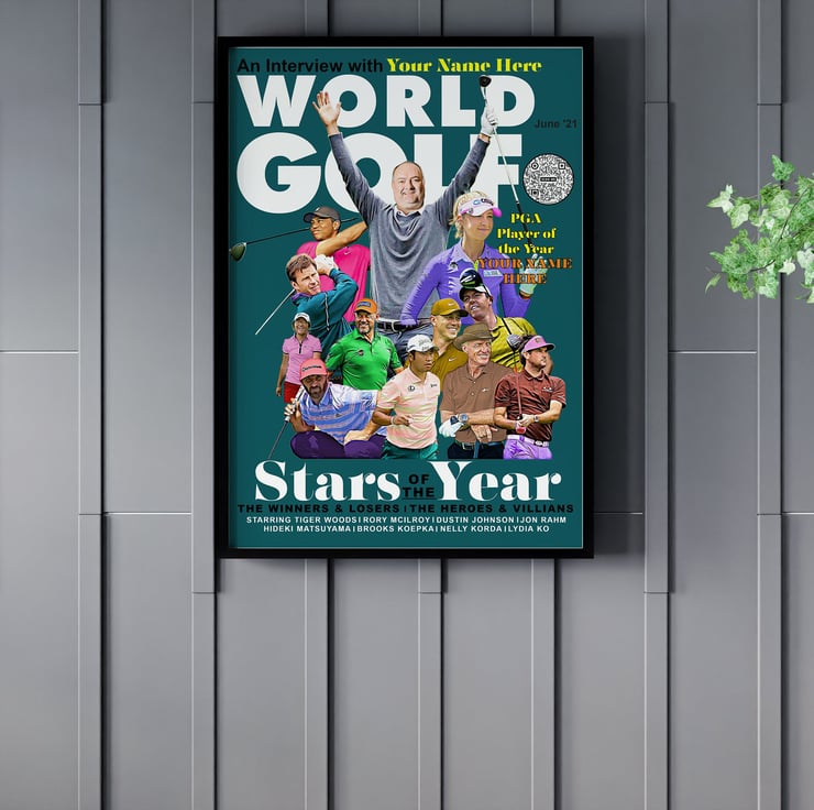 Do you know someone who is golf mad? This cover is a parody of a famous golf magazine featuring the person's name and their picture in among other famous painted faces. All we need to immortalise them in their own cover is their name and a good quality photo of their face. If you have any preference for a background colour, we will do our best to fit that into the design. Once you have purchased the item please email us at customwindowandwallart.co.uk with your order Number as the subject, the name you require on the cover, the photo (this needs to be of a good quality), and if you have a preference for a colour (this can be in the form of a photo, a colour hex code or even a paint name with the manufacturer) we will do our best to incorporate the colour as the background.