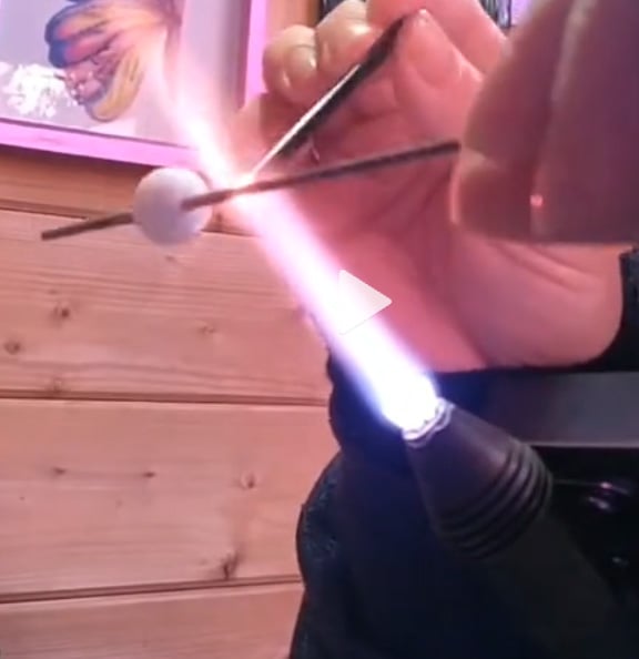 Each individual bead is created by hand by lampwork artist Jolene Wolfe with molten glass in the torch flame and cooled slowly in a kiln to create beautiful beads that are strong and free from internal stress. The beads are then cleaned and inspected before being strung into wearable art.