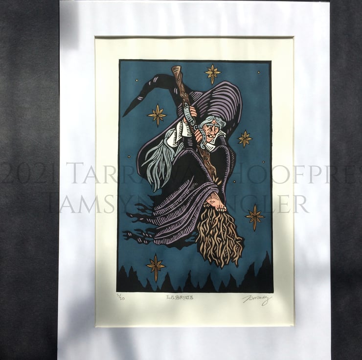 Inspired by historical imagery of witches and demons frolicking together, with illuminated manuscripts as another source of inspiration, I also like modern captures of unusual things caught on film, whether real or not or hereby unexplained, a video of something that looks like a stereotypically historical depiction of a witch caught my imagination and spurred on this image. As this video referred to what was captured in Spanish, "La Bruja", I kept the title.