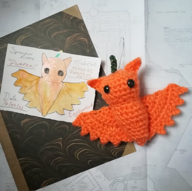 This enchanted bat comes with a little hook so you can hang it up either way.