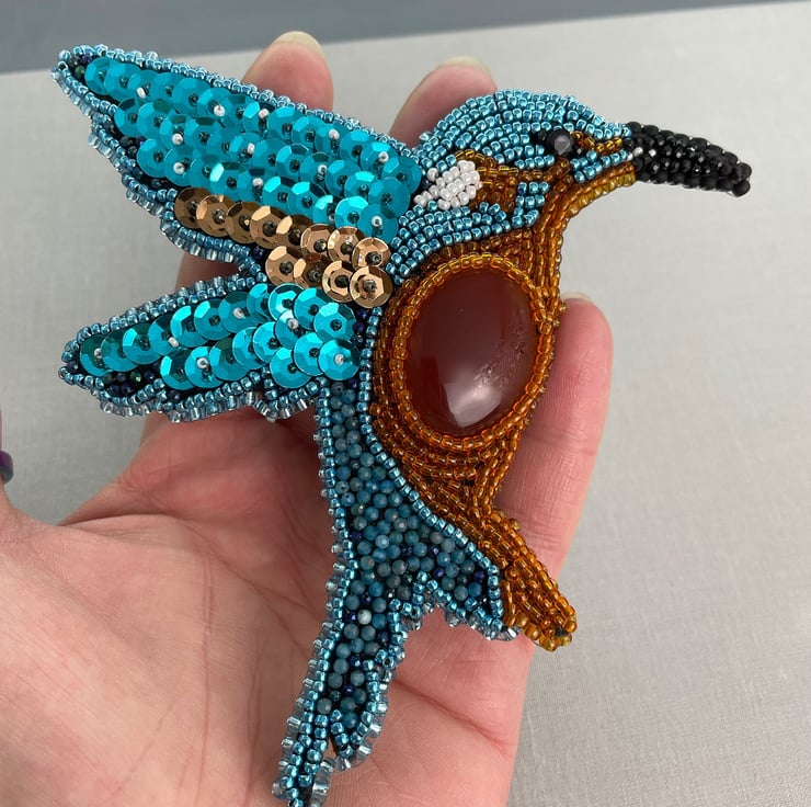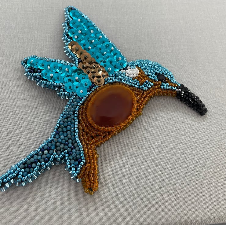I've been making a few pieces lately with bead embroidery including swans, owls and peacocks and it was crying out to me to make a Kingfisher and this is the result. I'll be adding the other birds to my Folksy shop in due course. I'll be making more bird themed brooches once I've added more products. So watch this space..!