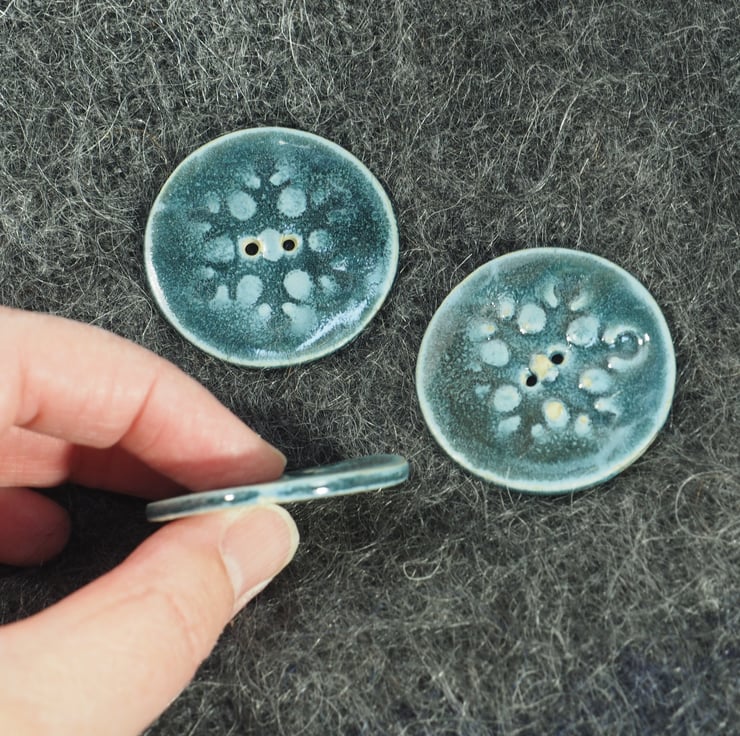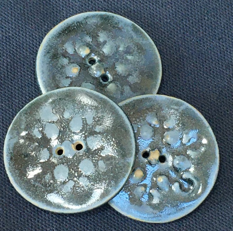 Set of 3 large porcelain buttons in a grey-green glaze.