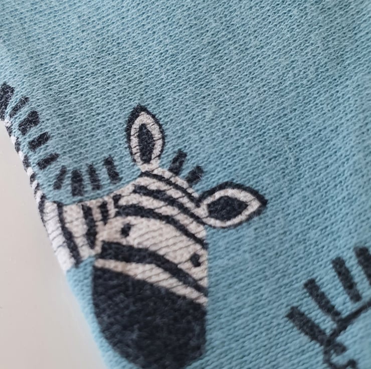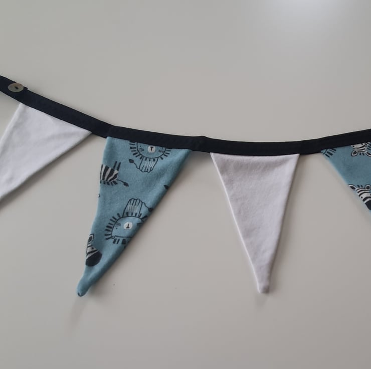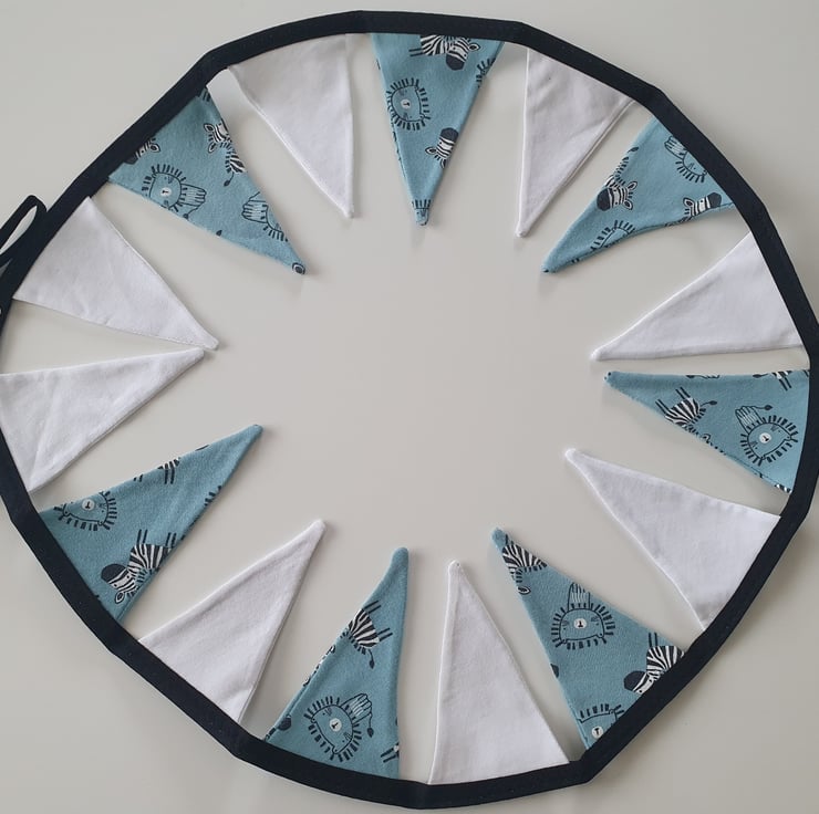 Who doesn't love zebras? Lovely zebra character print with complimenting white pennants and black binding.