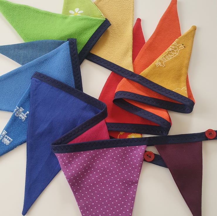 What's not to love about this gorgeous rainbow of every colour going? Made from a vast selection of pyjamas, t-shirts, vests and trousers - this garland has it all!
