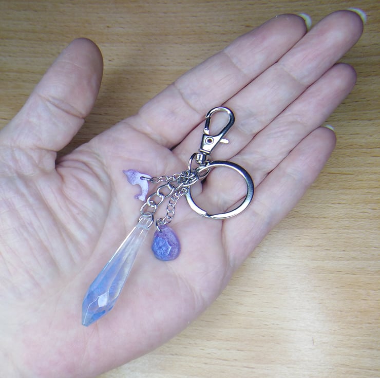 Trinkets are made from blue and purple mica powder mixed in resin.