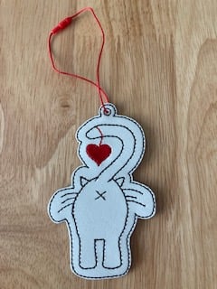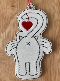 Cat butt heart hanging decoration made from vinyl and backed with felt.