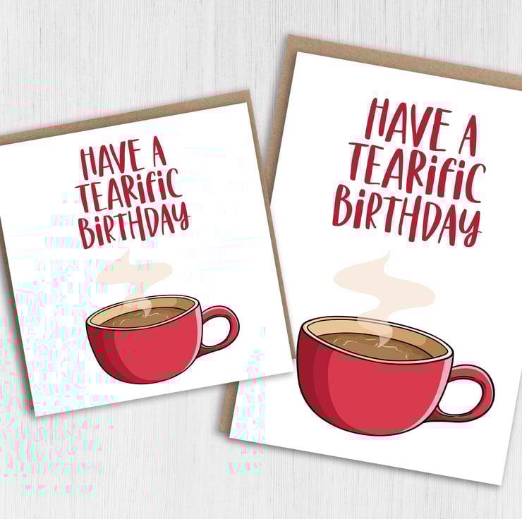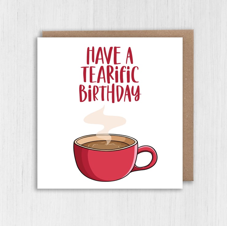 Tea lover, tea drinker birthday card: Have a tearific birthday (Size A6/A5/A4/Square 6x6")