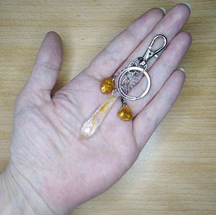 Faux crystal and trinkets are made from gold red mica powder mixed in resin.