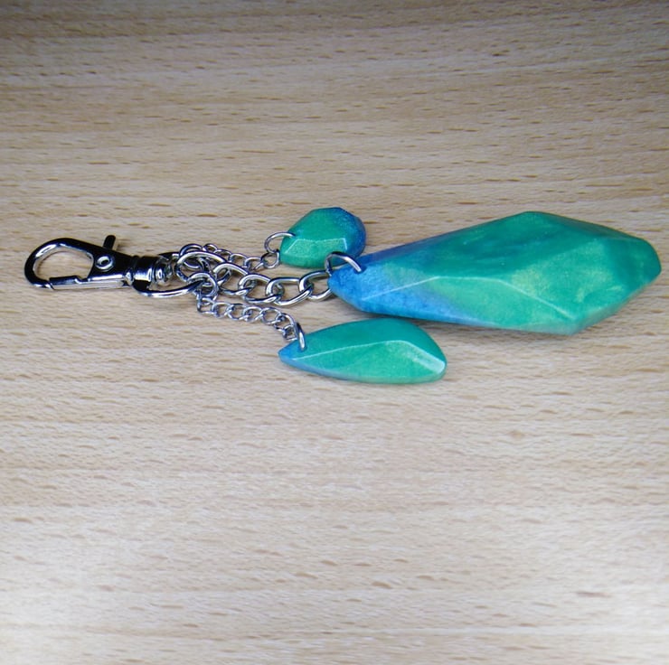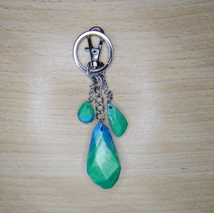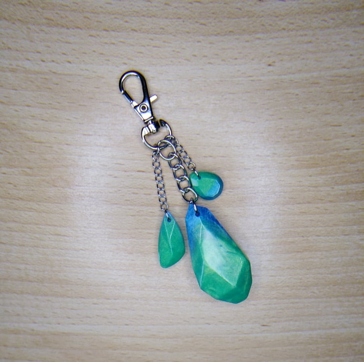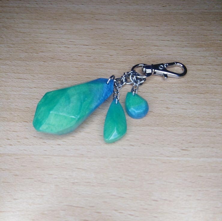 Lovely green and blue bag charm with lovely little green and blue trinkets.