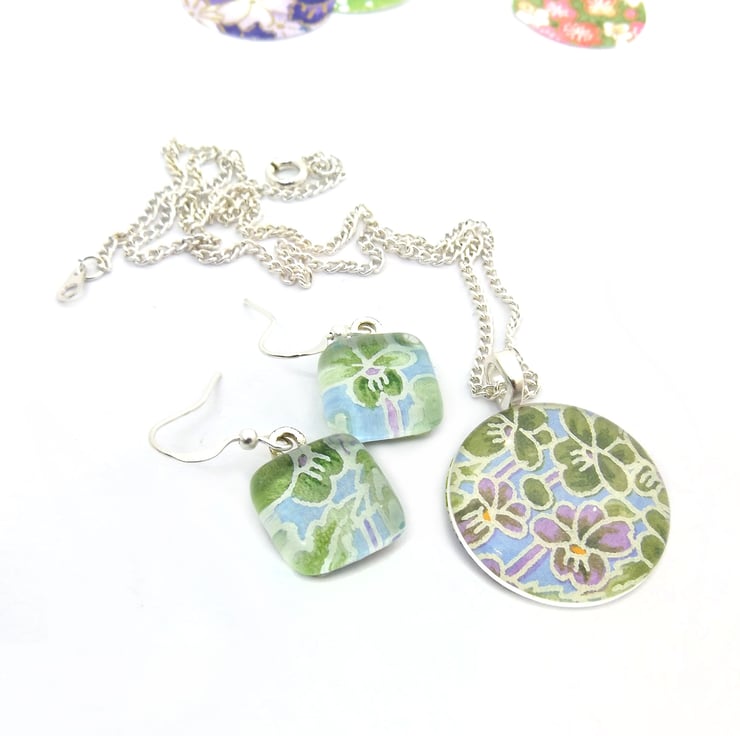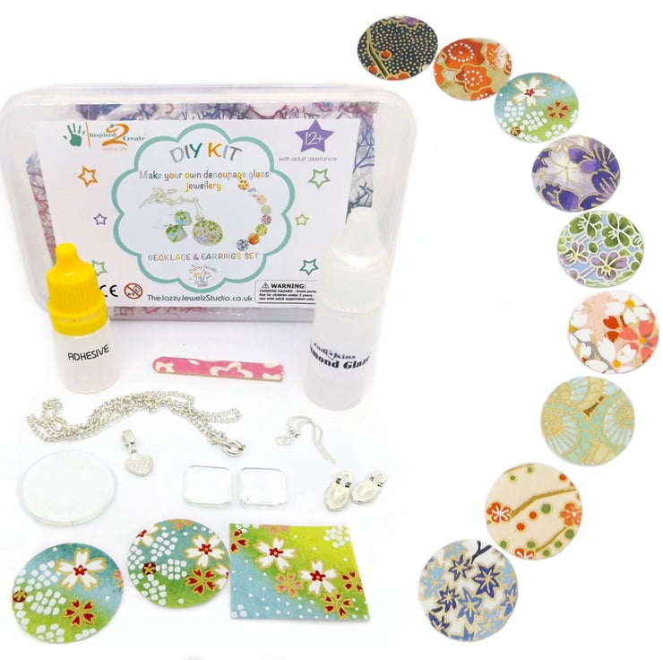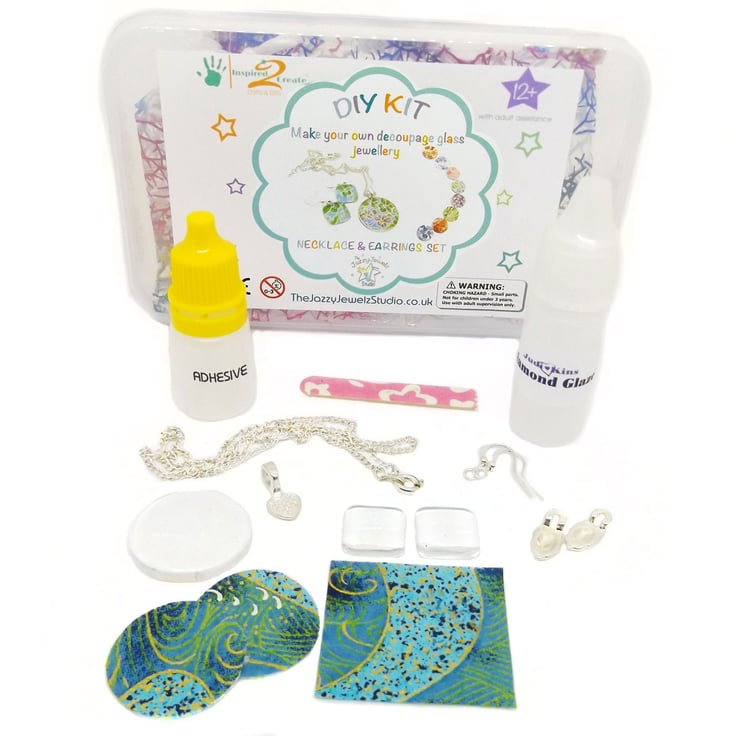 DIY craft kit to make a gorgeous glass tile pendant necklace and earring set.